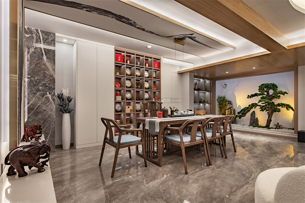 心隨禪境,靜心養神。無事啜茗,可對四季風景。當古木遇上朱紅,蔓延出婉約又貴氣的品質感,其中不乏穿越時代般的現代時尚與高級。展露一個完整的家居內涵里蘊含的精神人文主義。