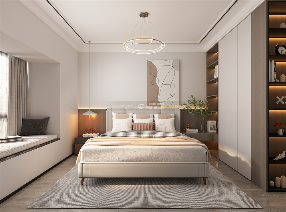 隨性的布局加上柔軟舒服的床上用品為睡眠帶來更放松的體驗(yàn),延伸出來的飄窗也為業(yè)主提供了新的休憩天地,一個(gè)空間內(nèi)帶來不同體驗(yàn)!