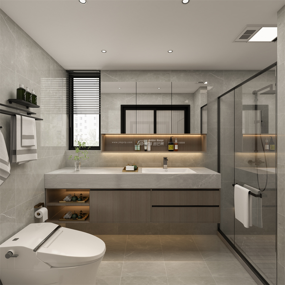 主衛(wèi)設(shè)計(jì)在主臥空間內(nèi),讓業(yè)主擁有套房體驗(yàn),日常起居都輕松自如,射燈的照射令空間更加通透明亮。