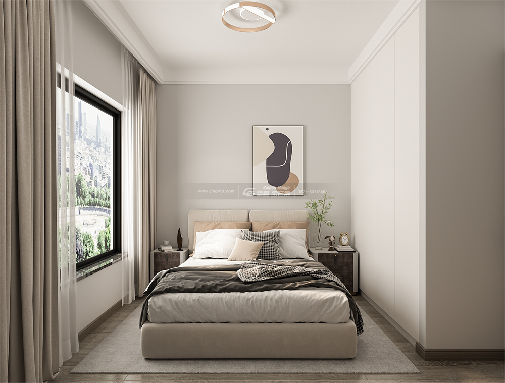 柜體美觀與功能兼具,空間色彩搭配自然素雅。拉開窗簾,讓自然光傾瀉在空間里,去感受早晨帶來的愉悅,早起也變成了一件美好的事!