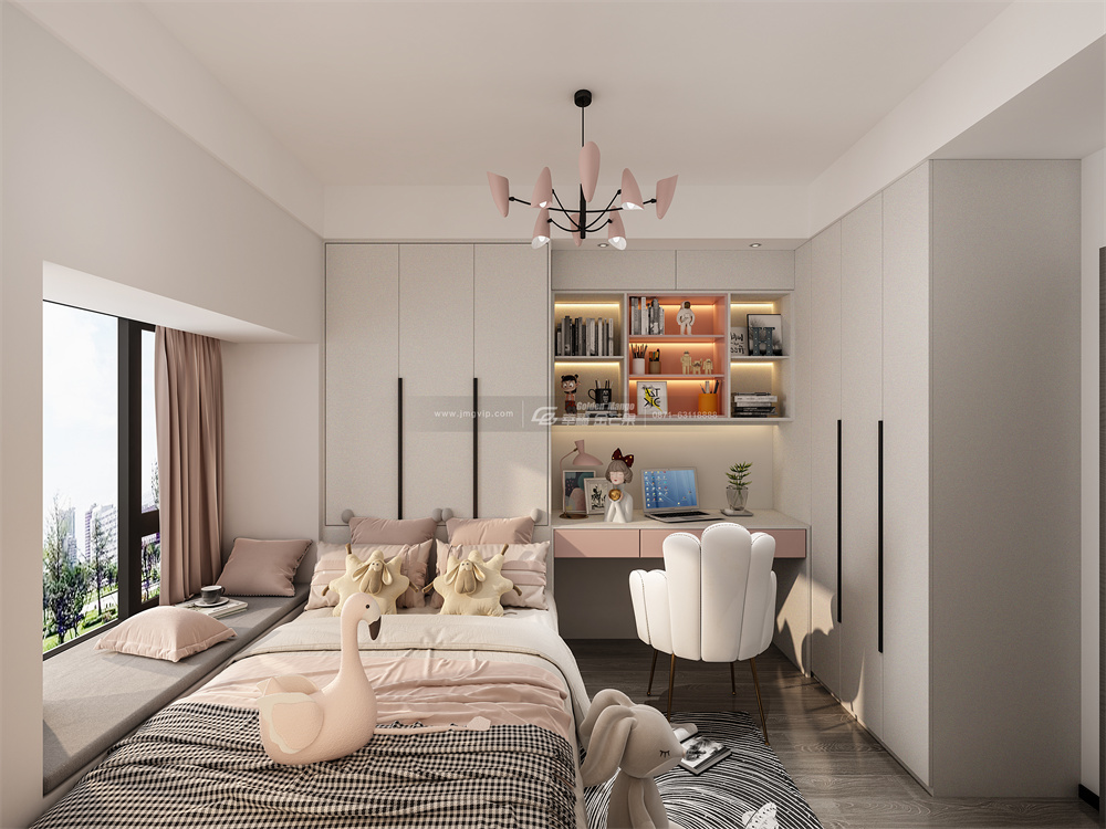 榻榻米做半屋布局,柜體書桌做一體化設(shè)計(jì),大大提升空間利用率,并做了開放格設(shè)計(jì),方便日常物品和精美飾品的擺放,內(nèi)嵌式燈帶讓光線更柔和,讓空間顯得更溫柔。