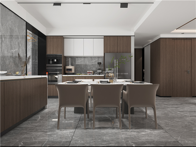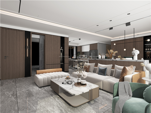 整體冷靜、安靜自在的氣質(zhì),井然有序的空間節(jié)奏,撫平煩躁的心緒,心思也變得有條理了起來(lái)。采用灰色地磚和大面積木飾面設(shè)計(jì),空間變得沉靜而富有文藝高級(jí)的氣質(zhì)。簡(jiǎn)約的線條設(shè)計(jì),加上大理石的點(diǎn)綴,絲絨材質(zhì)的抱枕,整體空間奢華而沉靜內(nèi)斂。