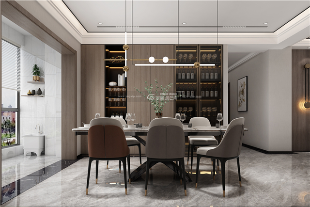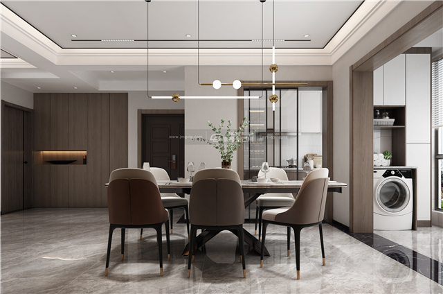 木質(zhì)的餐邊柜,溫厚而有質(zhì)感,增加空間的溫暖感,整體色調(diào)和諧統(tǒng)一,空間井然有序的簡(jiǎn)潔更顯高級(jí)。