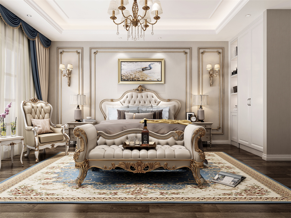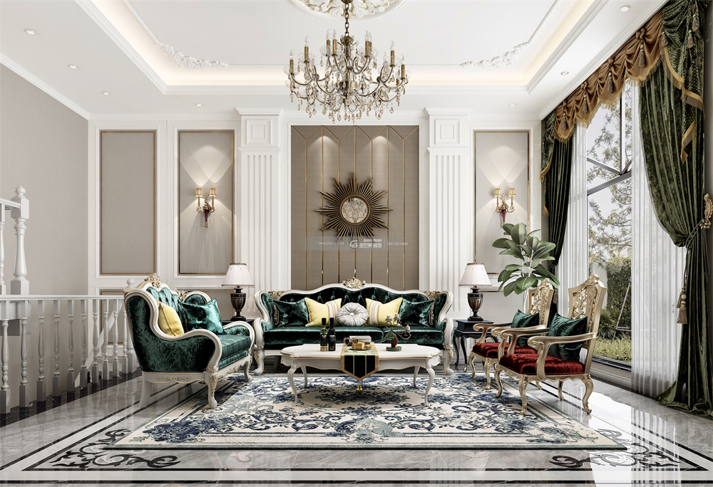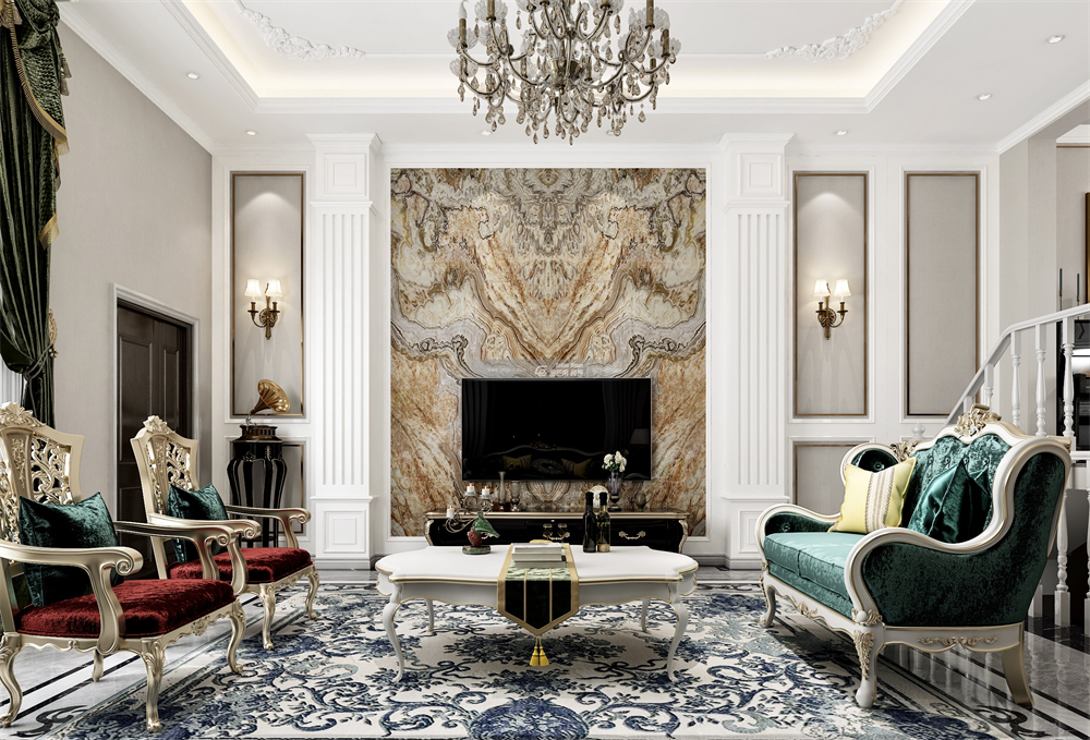 美觀的線條、精益求精的細節(jié)處理,使得空間質感和諧統(tǒng)一,地磚、地毯圖案皆為歐式經(jīng)典花紋,還原歐式濃濃風韻,整個空間大氣磅礴、氣場十足!