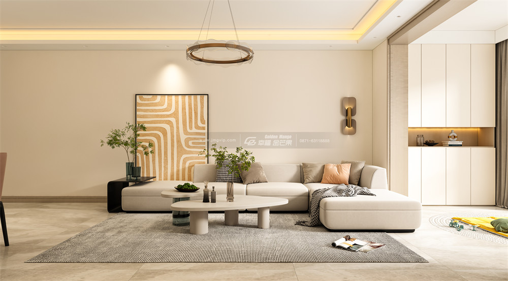 客廳沒(méi)有夸張浮華的裝飾,沒(méi)有絢麗豐富的色彩,沒(méi)有復(fù)雜冗余的設(shè)計(jì),可一切就是那么地純凈明亮、溫婉動(dòng)人,或許越簡(jiǎn)單越高級(jí)說(shuō)的大概就是這個(gè)意思吧!