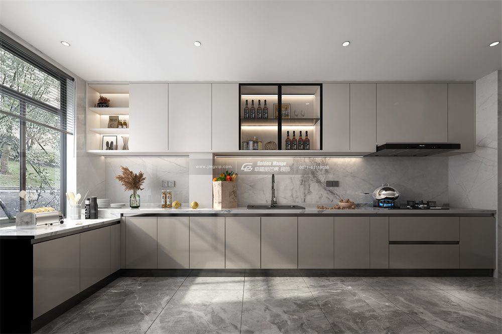 L型廚房設(shè)計(jì)讓廚房的空間利用率直線飆升,增加廚房空間收納空間的同時(shí)增強(qiáng)廚房的兼容性,廚房臺(tái)面干凈整潔,做起飯來(lái)得心應(yīng)手,當(dāng)陽(yáng)光透過(guò)窗戶照射進(jìn)廚房,松弛感充盈整個(gè)靈魂,做飯也不再是一件煩悶的事。