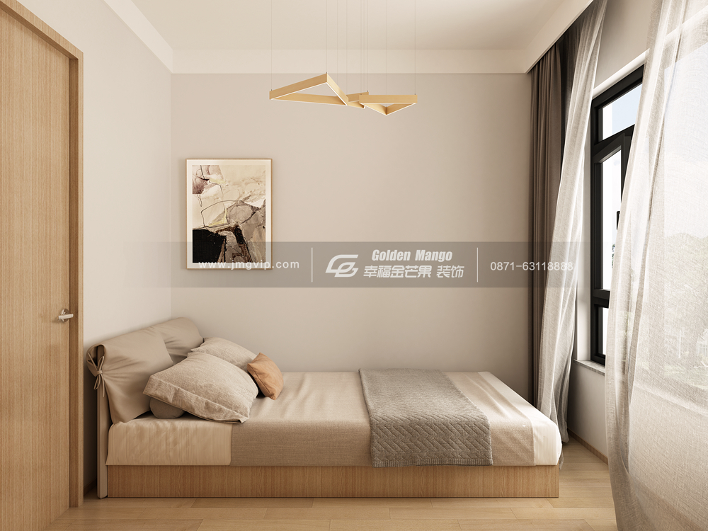 次臥自然純粹的原木風(fēng)元素,淡雅簡(jiǎn)約,柔和的陽(yáng)光透過(guò)窗戶,整個(gè)空間顯得更加溫馨了。
