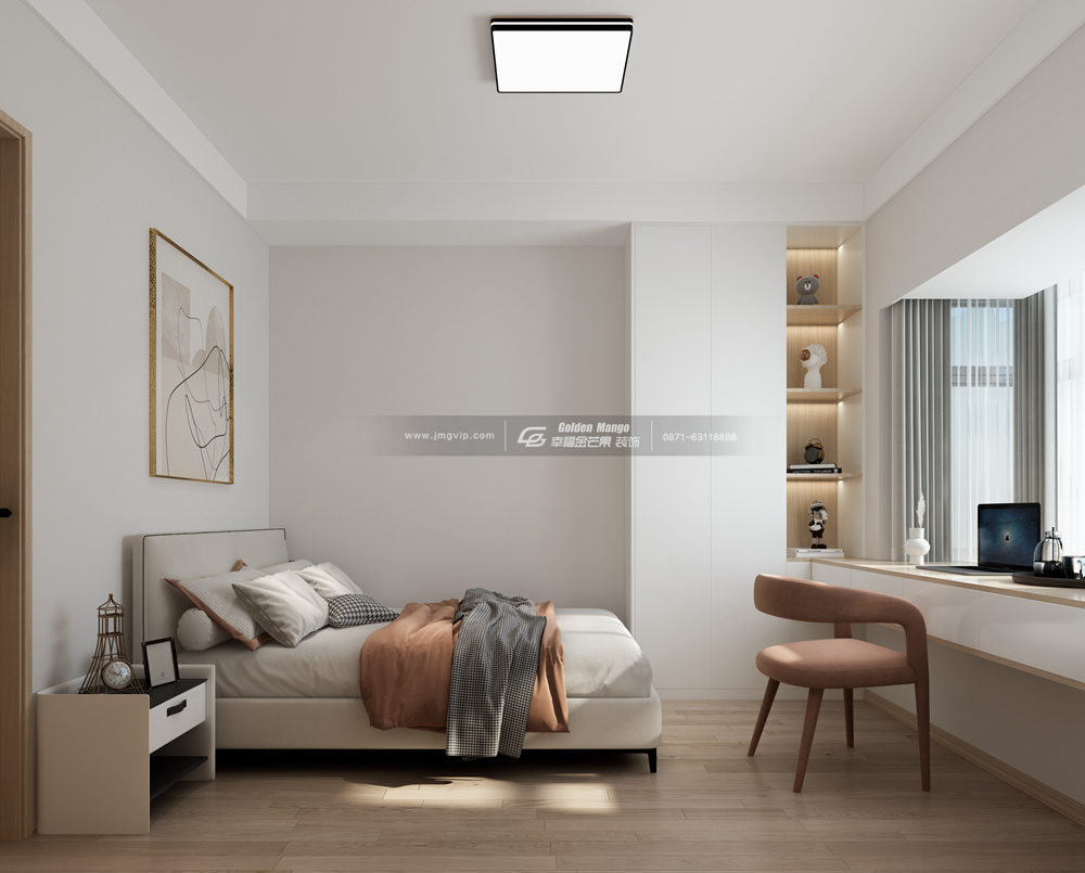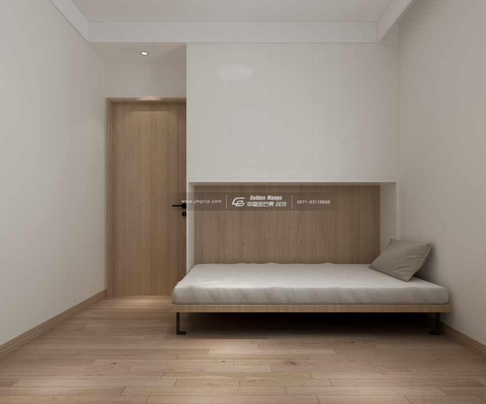 靠窗位置設(shè)置書桌和吊柜,陽光鋪滿書房,舒服而明亮,撫慰工作疲憊的身心;進門處設(shè)置可收納床體,放棄傳統(tǒng)榻榻米設(shè)計,閑時收起,用時放下,方便收納又不占地方,家里人多的時候還可以充當客房使用,簡直一舉多得。