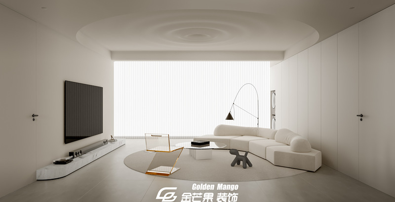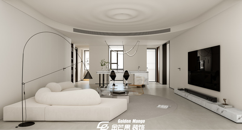 n 作為家的 “顏值 C 位”,客廳的設計直接定下了整套房子的氣質。金芒果的設計師以 “減法思維” 為核心,大面積的淺灰色地磚搭配米白色布藝沙發,如同給空間鋪就了一張干凈的畫布。最妙的是光影的運用—— 整面墻的落地窗沒有做繁復的窗簾,而是選擇了極簡的百葉簾,正午時分,陽光透過葉片在地面切割出斑駁的光影,傍晚則讓落日的暖黃溫柔包裹整個空間。