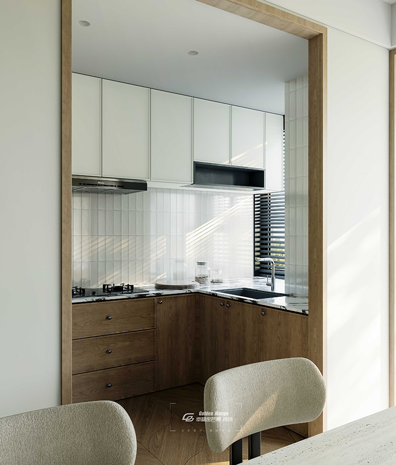 木質(zhì)的櫥柜與白色的臺面相得益彰,既保留了自然的溫度,又彰顯出現(xiàn)代的潔凈。在這里,烹飪不再只是日常的瑣事,而是一場與美食的藝術(shù)邂逅。每一道工序,都在木質(zhì)與白色的交織中,被賦予了生活的儀式感。