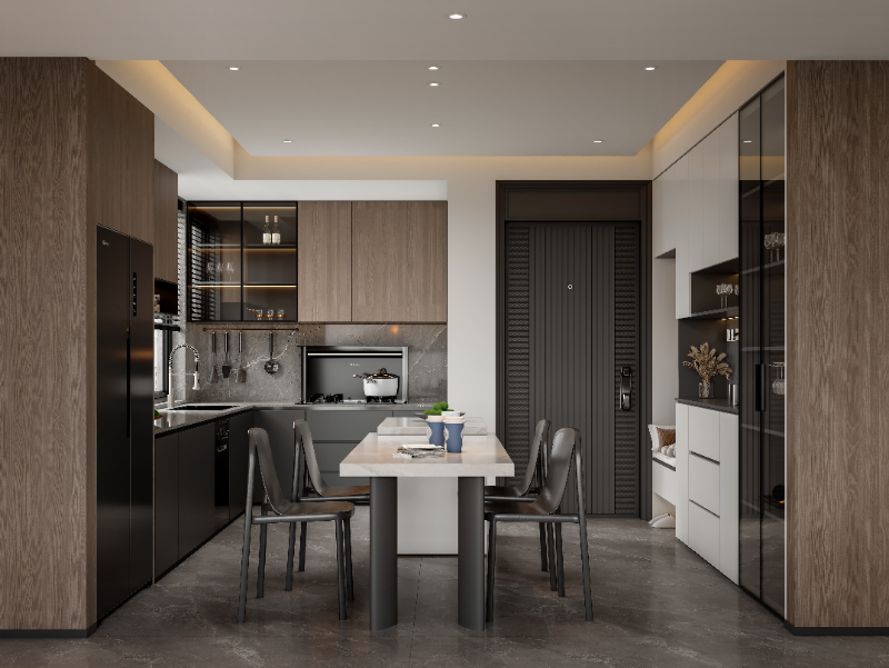 布局與空間:開放式的設(shè)計(jì)讓廚房與餐廳自然銜接,營造出寬敞通透的空間感。