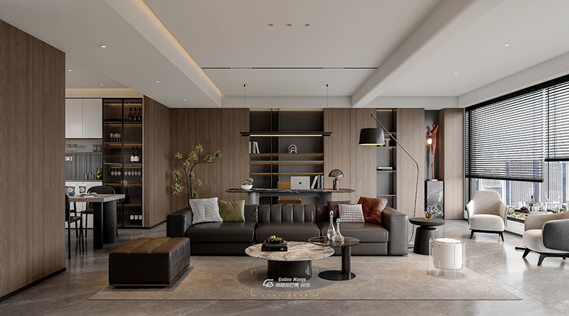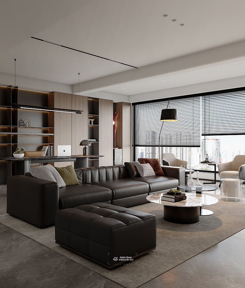 沙發(fā),現(xiàn)代而奢華,它不僅僅是一個休憩的角落,更像是一個情感的驛站。勞累一天后,窩在沙發(fā)里,或捧一本心愛的書,或與家人促膝長談。它的每一寸皮質(zhì)、每一根紋理,都在訴說著對生活品質(zhì)的執(zhí)著。而茶幾,那簡約卻富有設(shè)計感的大理石臺面,盛放著生活的精致與從容。幾本書、一杯咖啡、幾束鮮花,在這里,時光仿佛變得緩慢而悠長,生活的節(jié)奏也隨之變得舒緩而愜意。