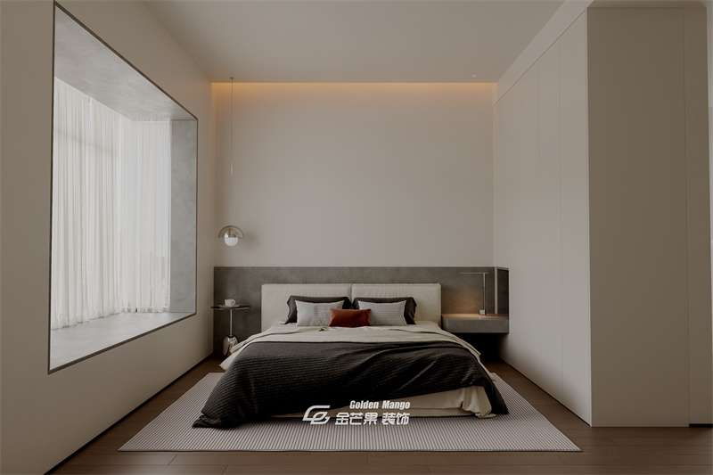 以米白、深灰、木色為主色調(diào),通過墻面的深淺色塊拼接、木質(zhì)地板與啞光涂料的材質(zhì)對(duì)比,營造出層次豐富的簡約質(zhì)感。