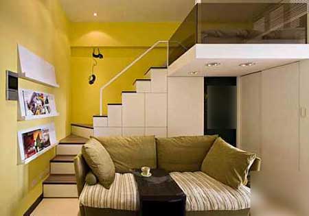 在復式結構的居室中,只要保證樓梯承重,樓梯下面的空間也應該充分利用起來??梢钥紤]在樓梯旁做一個吧臺或者工作區,這樣,樓梯下面的空間就會成為儲藏葡萄酒、盛放酒具器皿的好地方,或者可以騰出工作、看書的區域了。