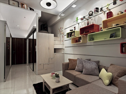 除空調以外,像飲水機、小電視機等經常使用的小家電如何擺放也是一個難題??梢钥紤]設計一個展示架,根據電器的尺寸,提前設計出展示架、擱架的大小,這樣,電器就能被輕松地放進去了。然后在擱架外面安裝可以自由滑動的磨砂玻璃門,平時不用的時候,磨砂玻璃門就能把電器隱藏起來,達到良好美觀的視覺效果。