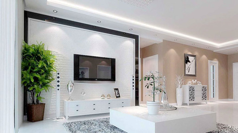 電視背景墻造型要避免有尖角、突出的設計。盡量不要對背景墻進行毫無意義的凌亂的分割 。宜采用圓形、弧形或平直無棱角的線形為主要造型。