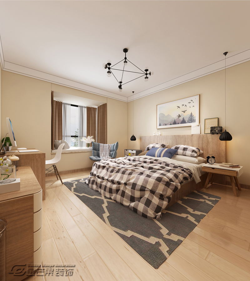 主臥的燈具和低矮的床體以及家具等產品的組合,讓整個空間顯得很廣闊,把北歐的藝術氣息完全凸顯出來了。