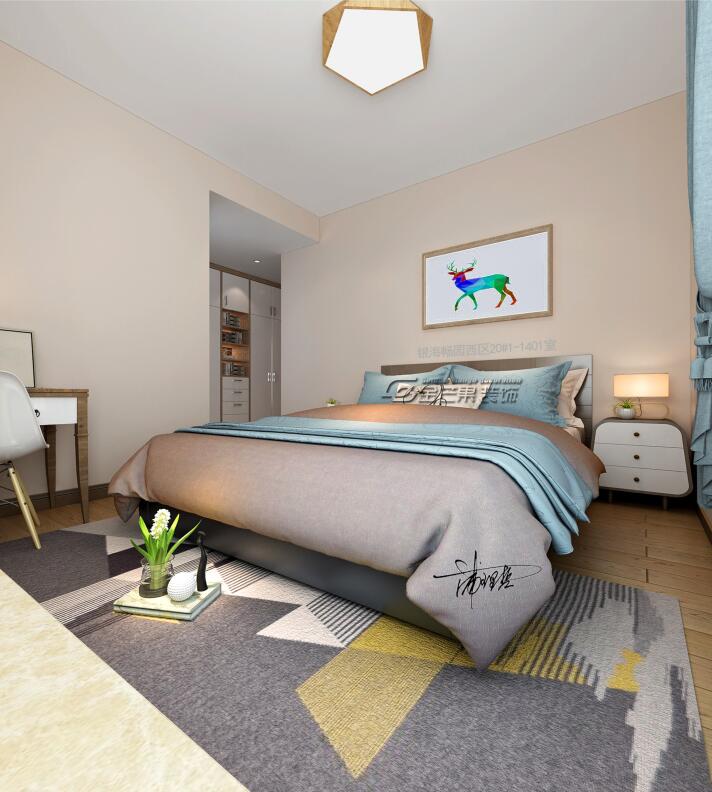 主臥室慵懶舒適,有想躺上去的沖動(dòng),臥室的色彩搭配,如同冬天的太陽(yáng),帶給室內(nèi)明艷的氣息。