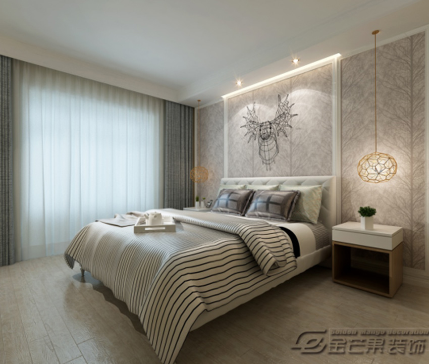 臥室沒有復(fù)雜的造型,走了一圈的石膏線條簡潔大氣,壁紙根據(jù)愛好搭配,建議使用不反光、溫暖色以便入睡安穩(wěn)。