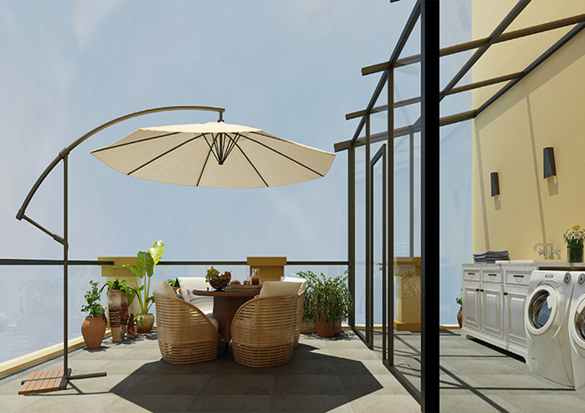 露天陽臺是家居生活的一大樂趣,享受大自然最美的風(fēng)景,感受微微徐風(fēng)的涼爽。閑暇之余朋友小聚、閑聊之所在。生活沒有多么復(fù)雜,愿得此陽臺足矣。