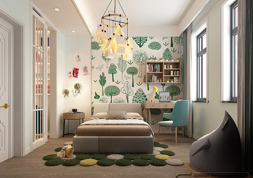 吊燈表示這里就是城堡,充滿著童話的色彩,散發(fā)著暖色的光芒。帶著一天的快樂,明天的欣喜安然入睡。