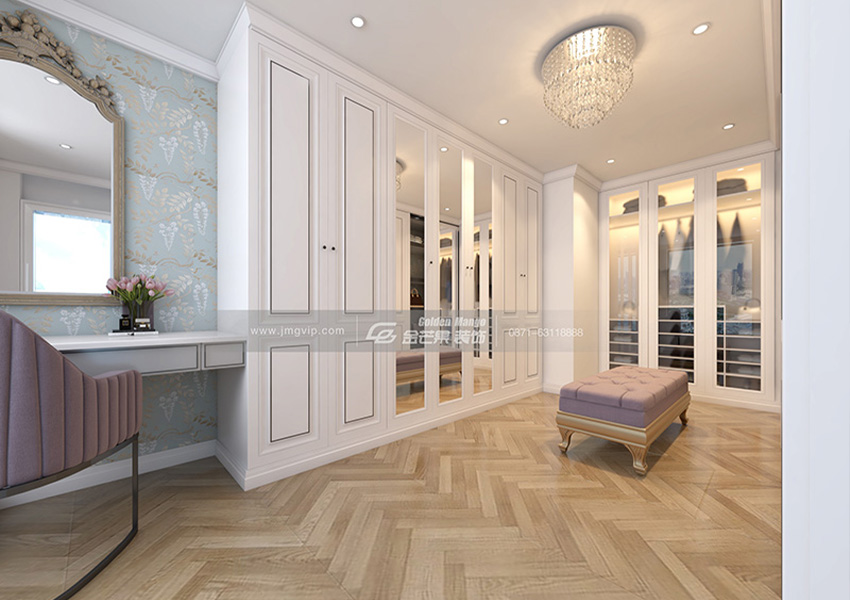 兩個衣帽間設計有異曲同工之處,以尊貴的紫色點綴。寬敞的衣帽間容納著主人對儀容儀表的態度。滿足主人的需求,呵護著主人的體驗。