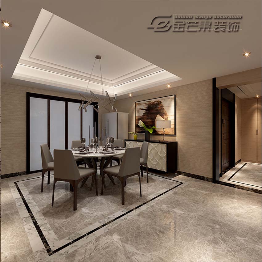 港式風(fēng)格的線條元素裝飾著墻面,和射燈相互作用,暖意十足。在客廳的布置上面帶有中式的味道,注重禮儀,中間的沙發(fā)為主座。吊燈映射出富麗堂皇的感覺。客廳和餐廳在同一空間,在使用上有很好的擴(kuò)展性,使整個(gè)空間更加的敞亮,淺灰色的大理石地板則顯得低調(diào),有涵養(yǎng)。