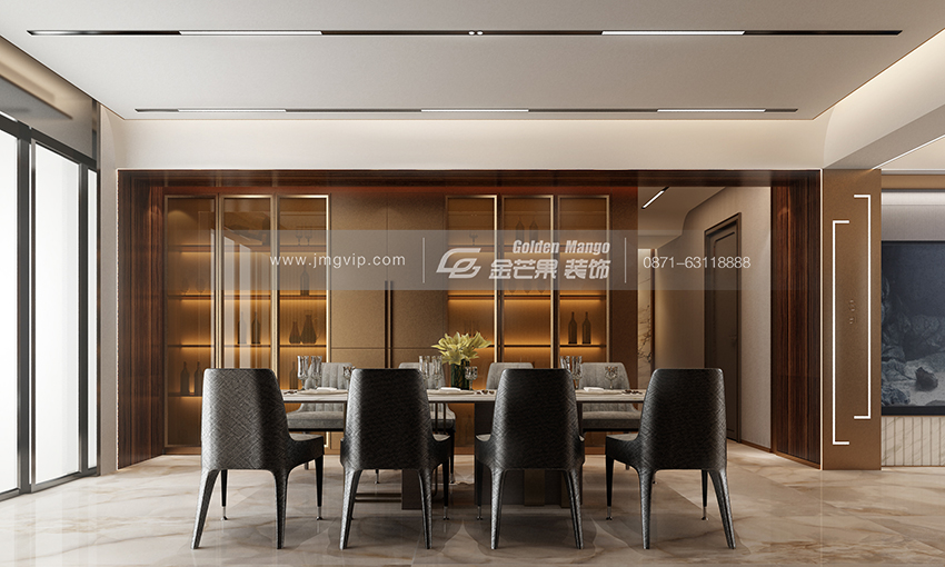 棕色的玻璃柜體呈現(xiàn)低調(diào)的華貴感,恰到好處的奢華與現(xiàn)代感十足的氛圍,與香港國際大都市的時(shí)尚氣質(zhì)不謀而合。精致的餐具和餐桌椅,營造滿滿儀式感。