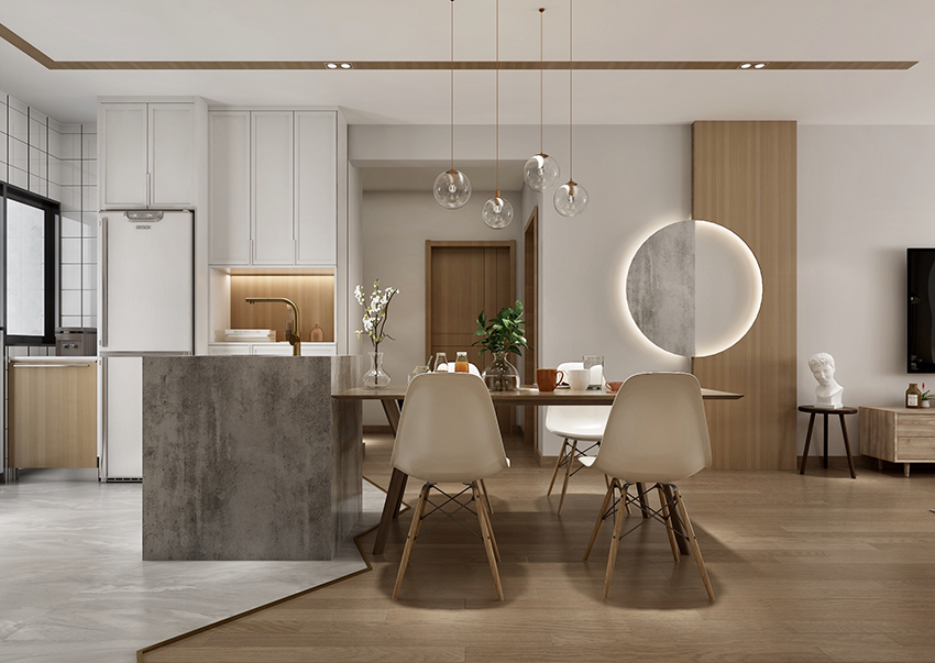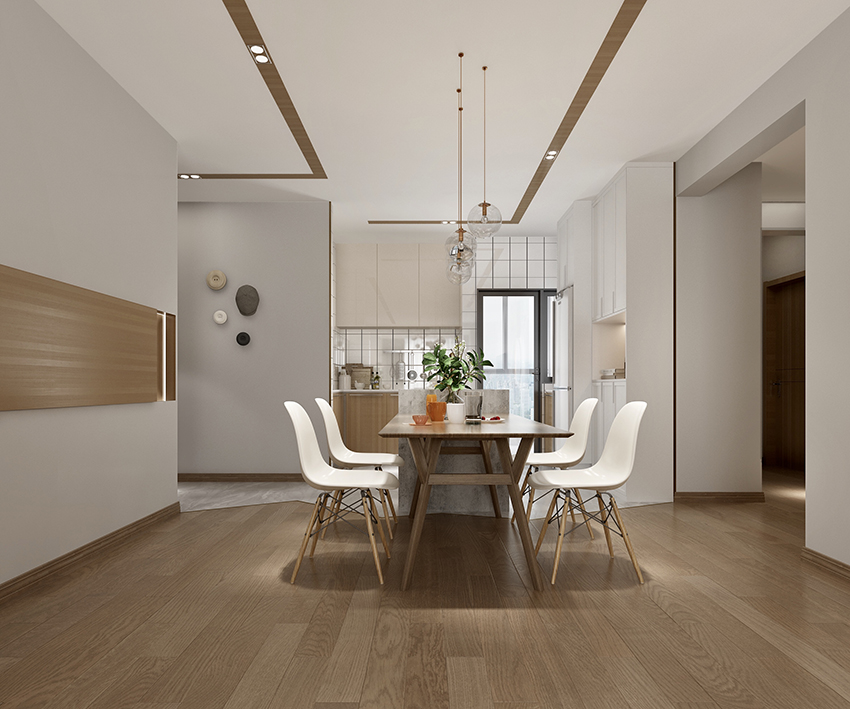 純凈的白遇上純粹的原木,像山間溫柔的風,似林中斑駁的影,閉上眼,仿佛回到了小時候赤腳奔跑的場景,腳底下原木溫厚的質感,讓人踏實又安心。