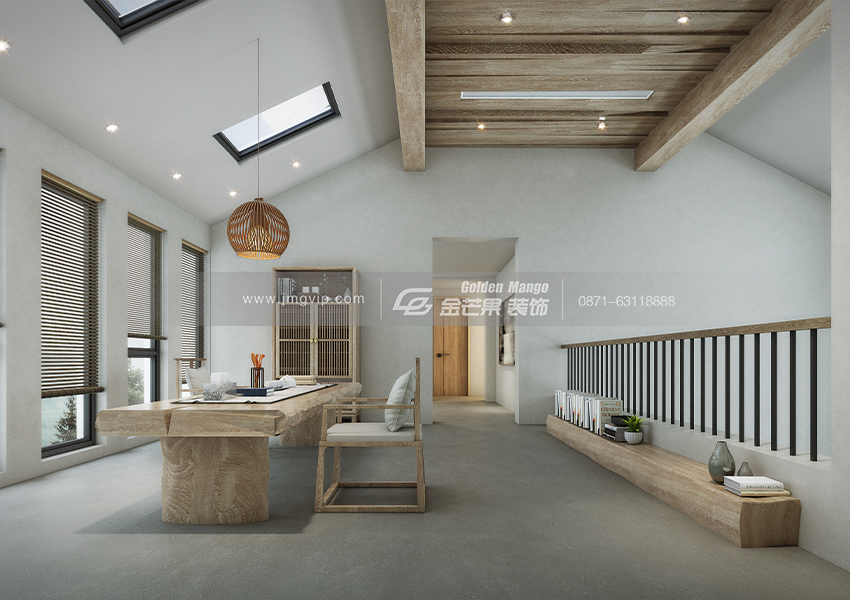 開闊的空間讓原木的衣柜和家具更有韻味了,整體空間沒有過多的裝飾,突出一種本質(zhì)的、通透的,靈性的美。