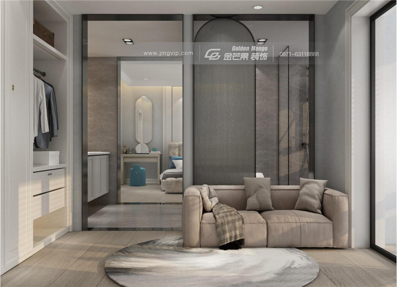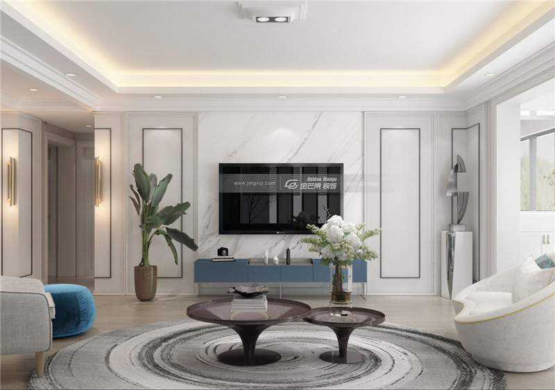 布藝沙發(fā)慵懶舒適,寬敞大氣的柜體和整體空間相協(xié)調(diào),搭配柔和的線條和光源,打造別樣的法式浪漫風(fēng)情。