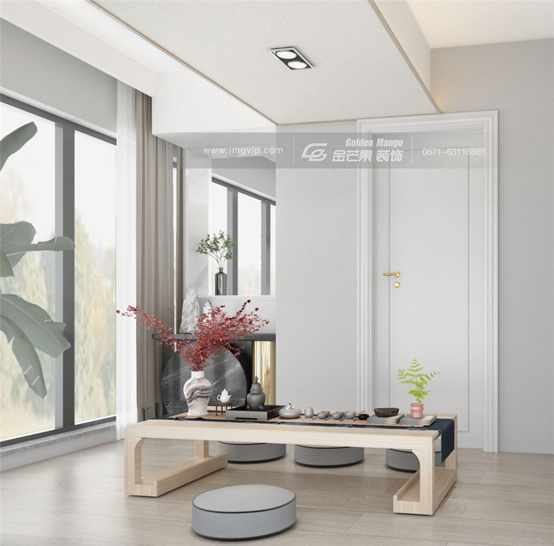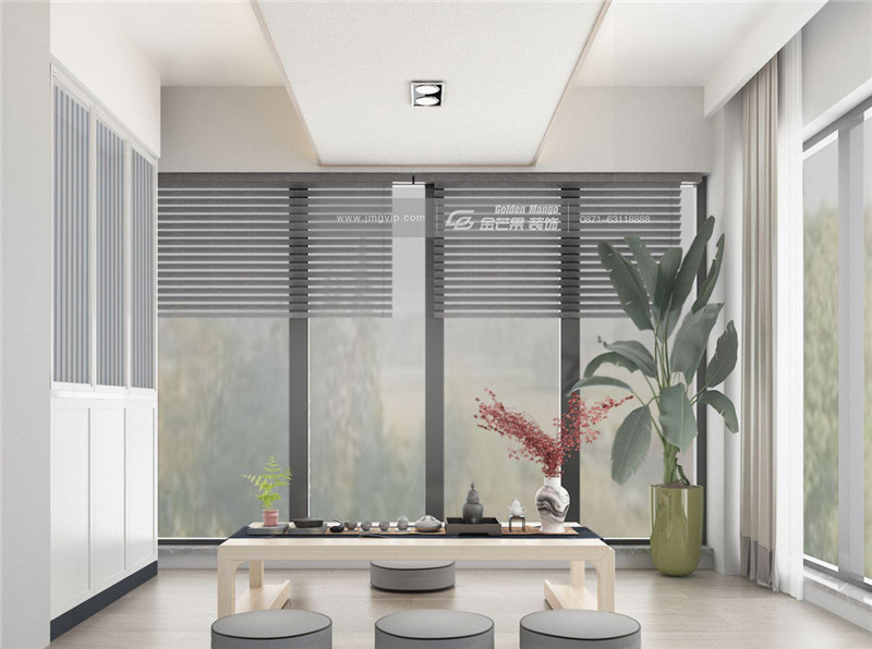 幽靜雅致,溫婉怡然,忙碌的都市生活亟待精神生活的拯救,茶室一角為家居預(yù)留了這一份詩意。采光良好的落地玻璃通透靈動,綠植和紅色花束,氣質(zhì)之余為空間營造隨意慵懶的氛圍。