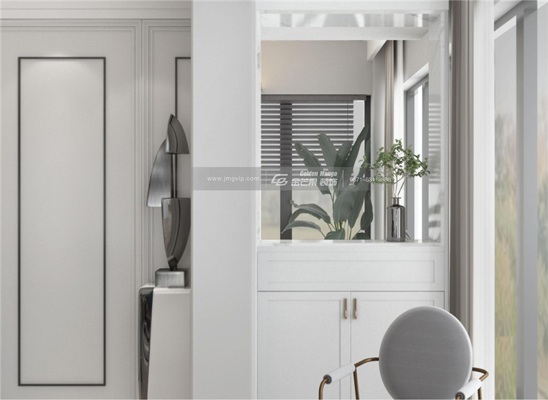 陽臺隔斷區(qū),灰綠的植物帶來讓人舒心的安全感,木質(zhì)的溫厚和鐵藝的精美融匯,呈現(xiàn)氣質(zhì)的舒適空間。