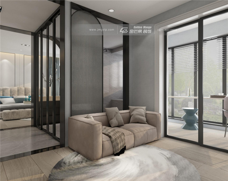 簡約現(xiàn)代電視背景墻,無需過多的修飾,精致質(zhì)感自現(xiàn)。沙發(fā)背景墻,花墻疏影,清風(fēng)徐來,吹拂簾布,為空間注入一絲漣漪。
