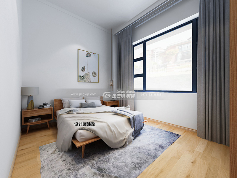 整體空間色彩仍是以淡色調為主,沒有過多的裝飾,為的是營造清雅的空間氛圍。地毯上的水墨圖案增加中國風的意境,主人可在此肆意潑墨揮毫。