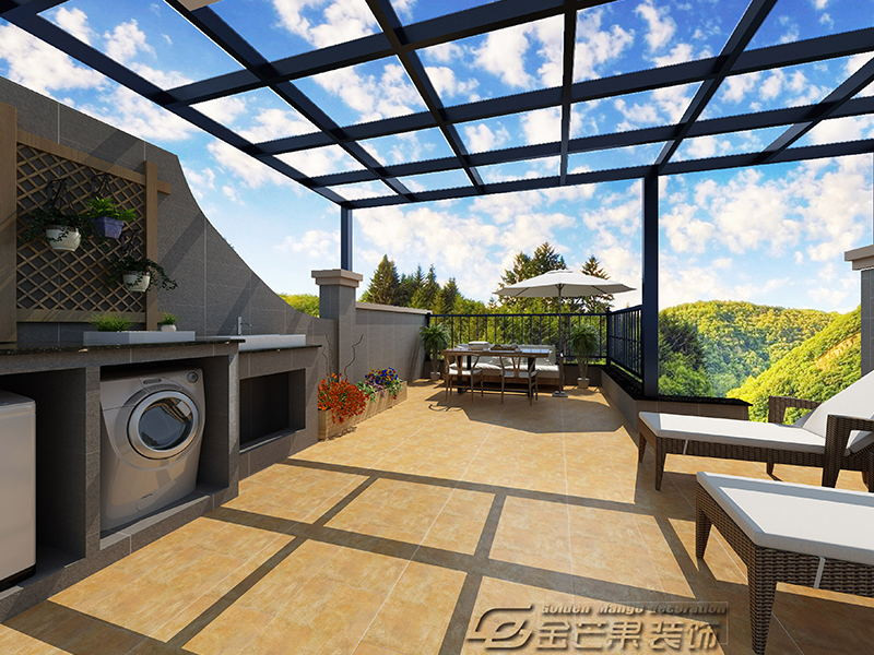 寬闊的陽臺戶主在此曬日光浴、看書、欣賞風景、聚會,提升生活品質,放松身心。同時又兼具洗衣房的功能,功能性強。