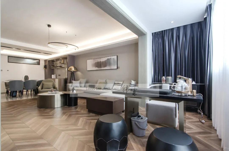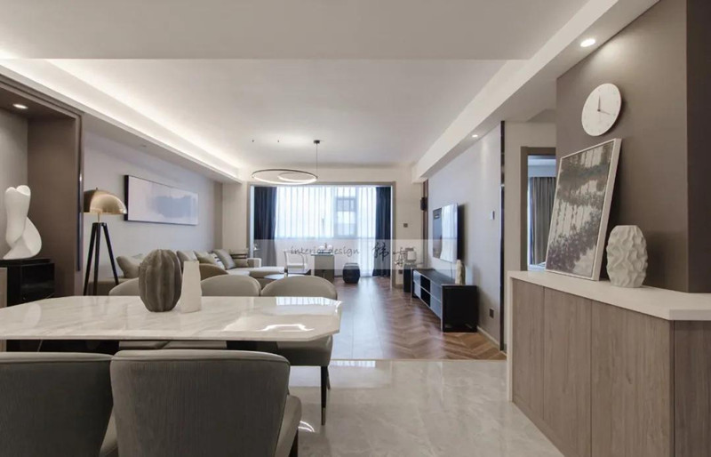 全屋選用大面積灰色調(diào)和卡其色,內(nèi)斂、平靜,氣質(zhì)卓然,在歲月的沉淀下愈發(fā)精致,不是稍縱即逝的時尚快節(jié)奏,而是在時間的淘洗下變得經(jīng)典和永恒。