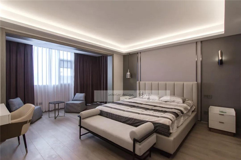 主臥的設(shè)計凸顯生活的質(zhì)感,體現(xiàn)業(yè)主的品味和生活積淀。優(yōu)雅的紫色和沉穩(wěn)內(nèi)斂的灰白色調(diào)相搭配,呈現(xiàn)的是精致、舒適的氣質(zhì)臥室空間。雖然簡約,但是搭配設(shè)計后卻毫不簡單。