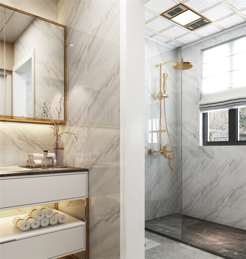 衛(wèi)生間也精致感滿滿,細(xì)節(jié)處的精美設(shè)計(jì)奢而不膩,金色鐵藝營(yíng)造滿滿的高級(jí)感,不放過任何一角,衛(wèi)生間也可以是別出心裁的優(yōu)雅空間。