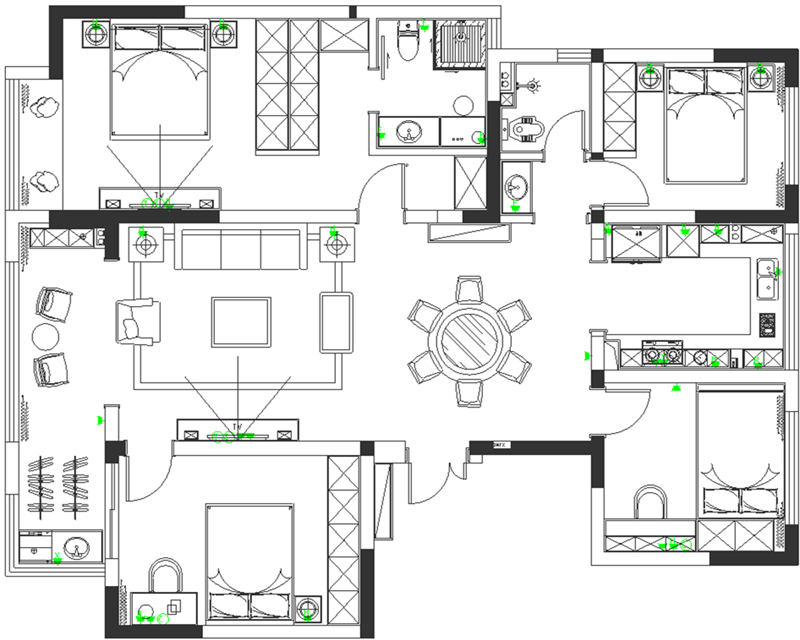 優(yōu)點(diǎn):戶型結(jié)構(gòu)方正,四室兩廳兩衛(wèi),帶有兩個(gè)陽(yáng)臺(tái),每個(gè)空間的采光及通風(fēng)都很不錯(cuò)。