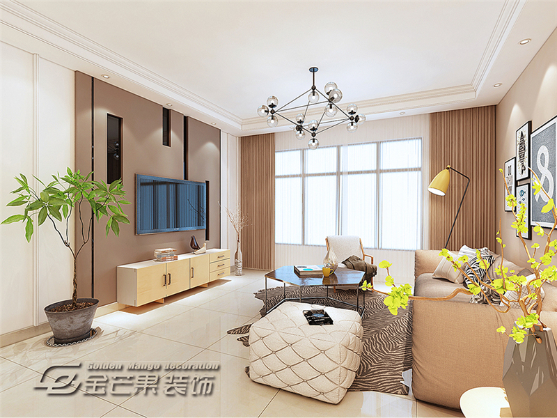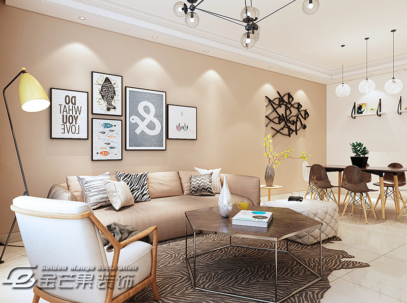 客廳整體給人呈現(xiàn)的是一種明麗、活潑的氛圍。暖黃色的家具搭配讓整體空間靚麗而不張揚(yáng),時尚而又溫馨,個性的地毯和桌子讓空間更有層次。不規(guī)則的燈飾個性又精致,增加藝術(shù)感。客廳整體北歐風(fēng)的營造是偏暖色和活潑時尚的,區(qū)別于一些偏自然和沉靜的風(fēng)格,此套案例顯得更加時尚和張揚(yáng)一點。