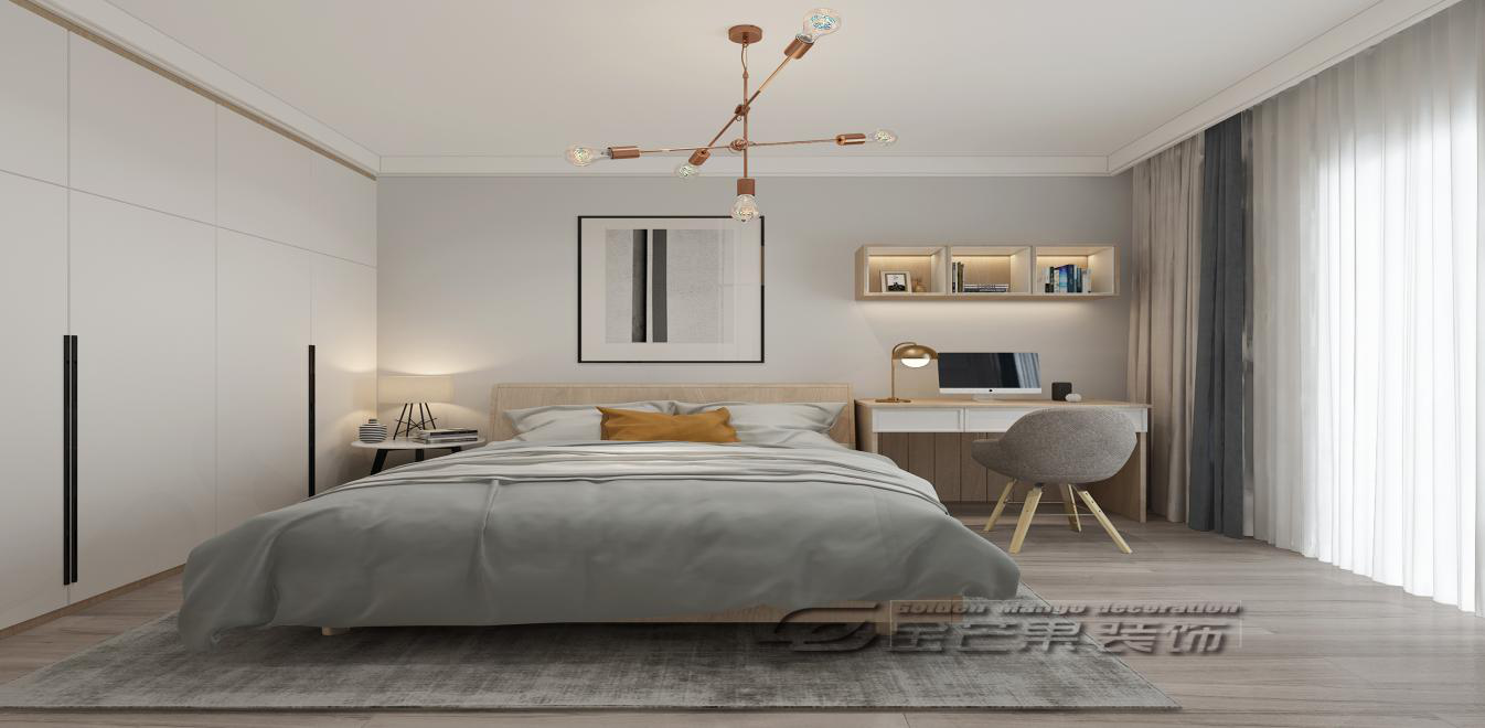 1. 入戶位置對臥室門的問題,通過調整主臥室的門洞位置,達到趨利避害的目的,讓入戶第一眼看到的是餐廳背景這一個景。