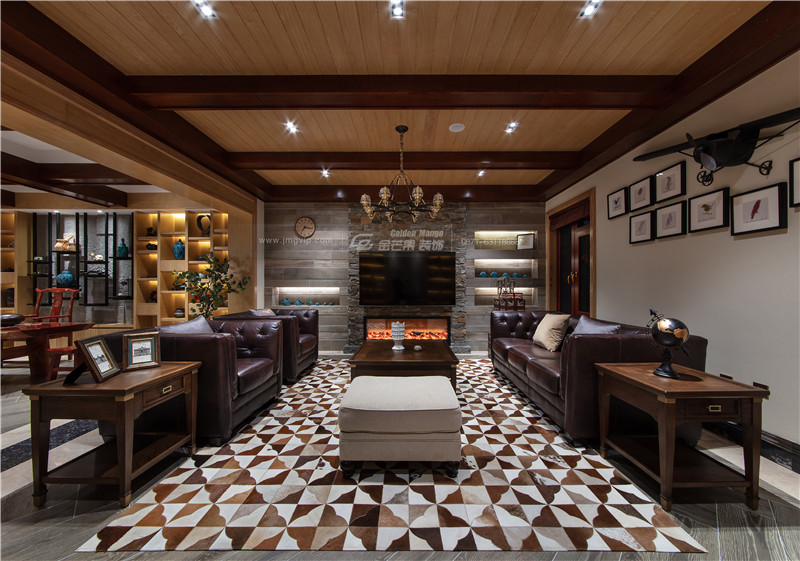 休閑客廳是比較隨性的格調,但與之于整個空間是協調的。柔軟的皮革,簡潔的家具,仿原始建材的背景墻,壁櫥,營造一種慵懶的氛圍,滿足業主平時一些放松、休閑的需求。