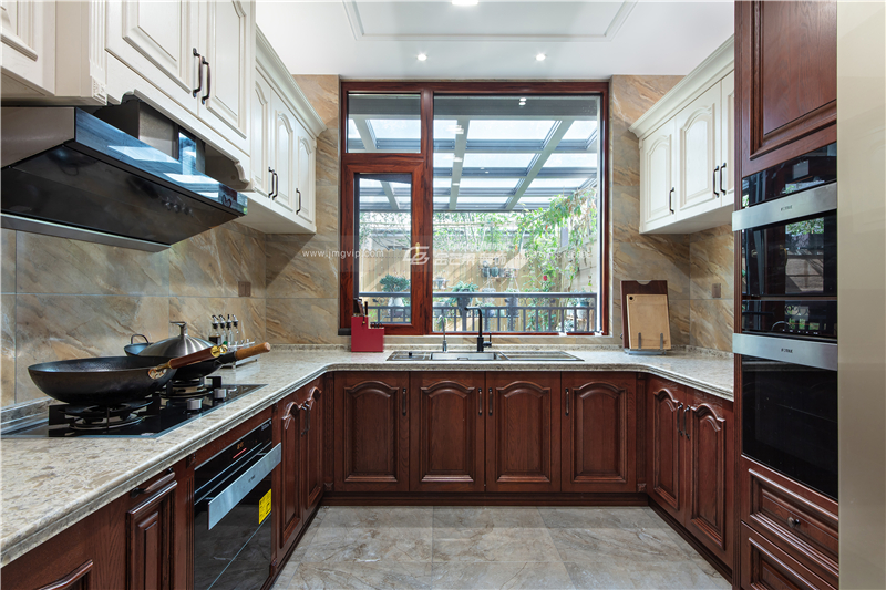 開放式廚房設置島臺,同時滿足中西廚的烹飪需求。