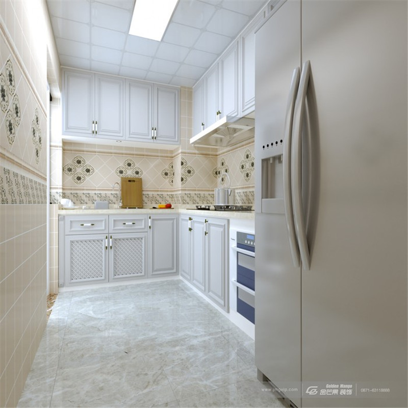 廚房上的花紋讓空間不再單調(diào),白色的柜體明亮、簡潔,增加空間通透性,不會(huì)讓廚房顯得過于擁擠。