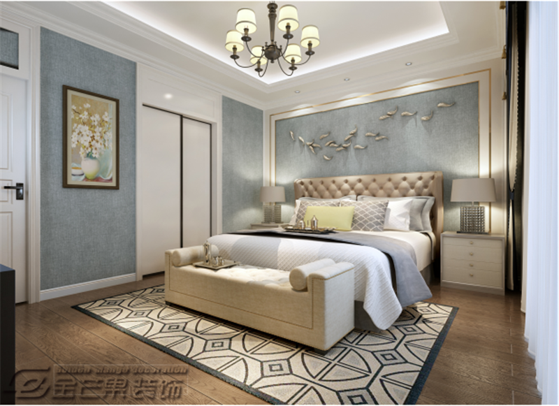 兒童房的設(shè)計(jì)溫馨又不脫離整體空間的歐式風(fēng)格,墻上的小魚(yú)裝飾使房間更加活潑,彰顯童真,簡(jiǎn)約大方的裝修也符合孩子內(nèi)心的干凈和純真。