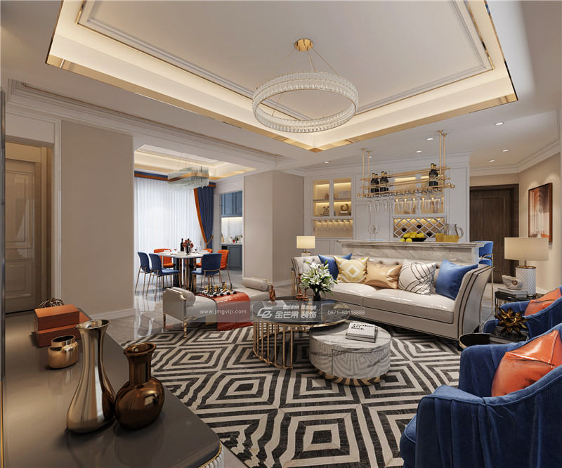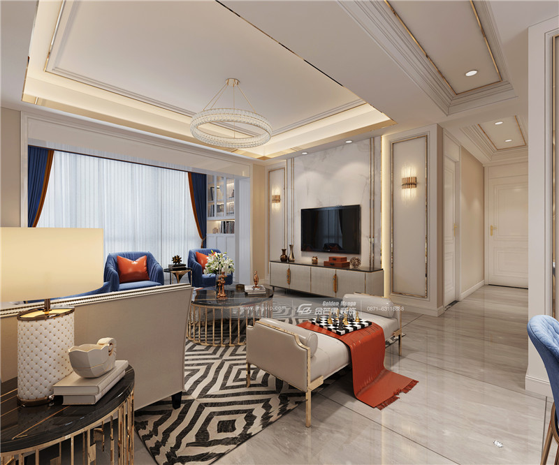 象牙白的經典配色,奢華感不言而喻,金色線條吊頂,邂逅一曲華麗的金色戀歌。