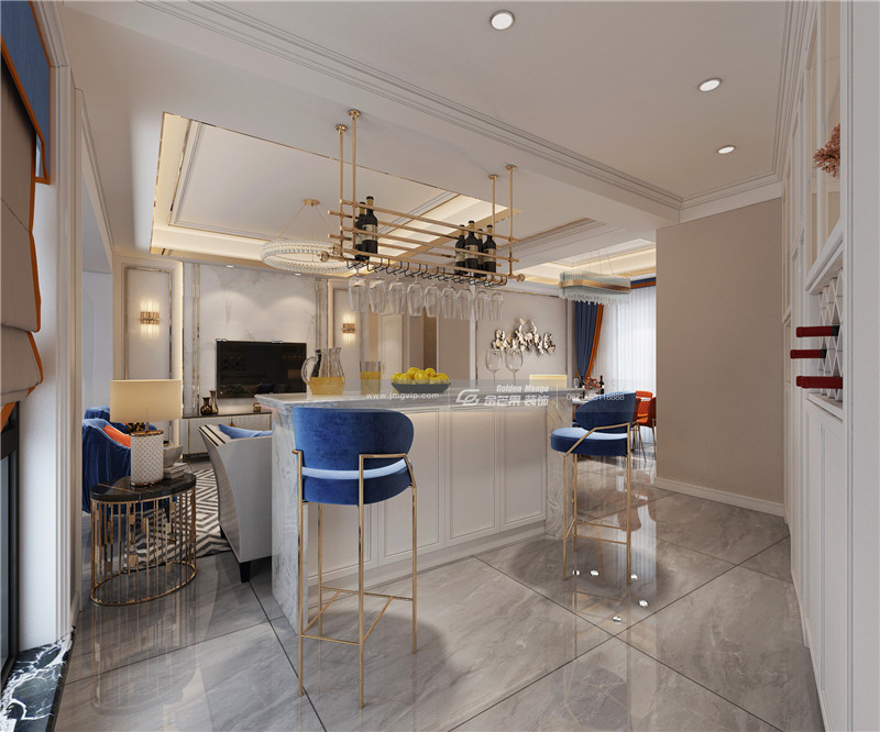 大理石吧臺觸手冰涼的質感,一杯醇香的美酒,一段輾轉的故事,杯影倒映出的,是家的儀式感與精致感。