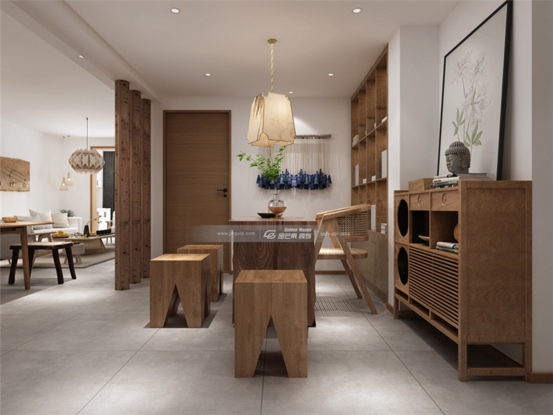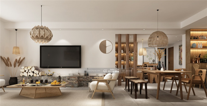 原木和簡約白色的結(jié)合,隨處可見的仿原始建材元素讓家充滿質(zhì)樸、清雅的氣息。燈飾、茶幾、時鐘充滿藝術(shù)氣息,展現(xiàn)返璞歸正的家居特色。