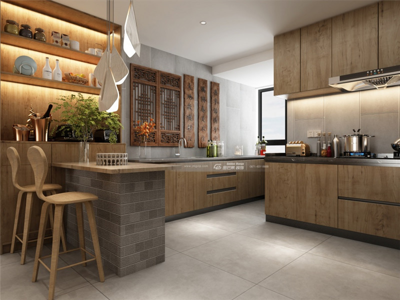 現(xiàn)代時尚與端雅氣息的結(jié)合,讓整個廚房空間獨具特色而又愜意舒適,在家就能享受別樣的度假般的感覺。